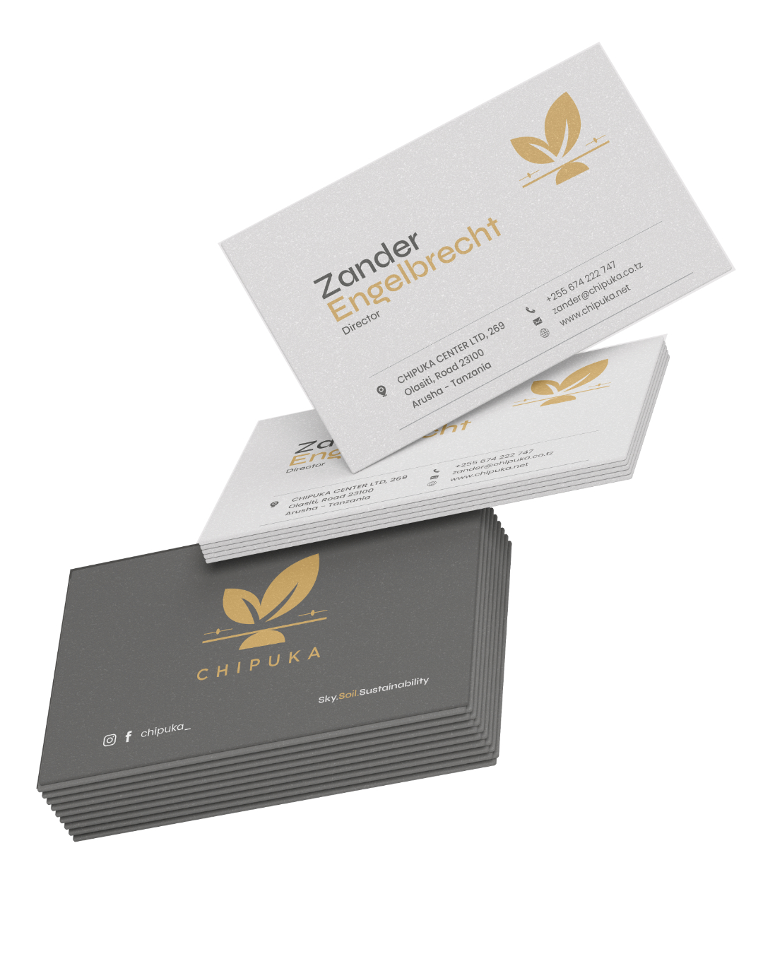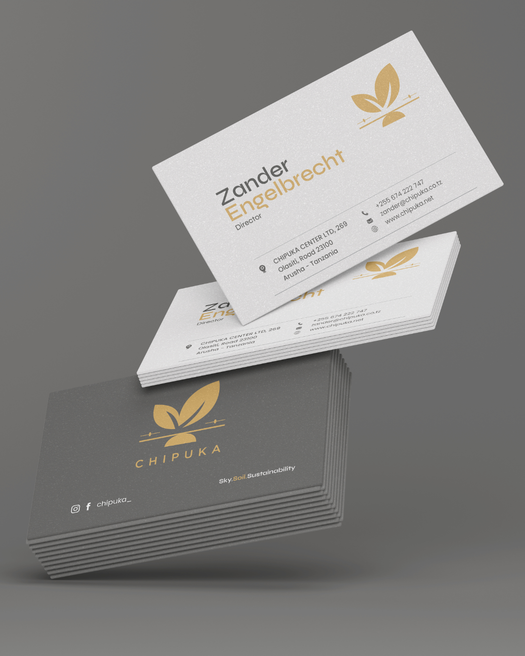 Every visual element of Chipuka reflects the brand’s essence — Sky. Soil. Sustainability. From the refined logo to the extended color system and applications like stationery and email signatures, each design was shaped to balance conservation, aviation, and education. The result: a clean, bold identity that communicates precision, purpose, and Tanzania’s natural spirit.